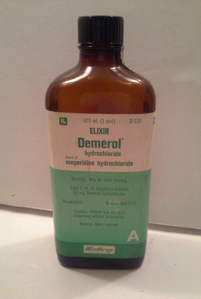 di DEMEROL. Marca di cloridrato di meperidina, per il motivo che per cucchiaino da 5 mL (25 gocce contengono 13 mg